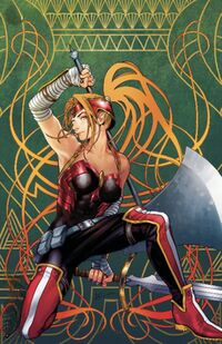 With Atalanta with her, she returned alongside Wonder Woman to Bana-Mighdall as she intended for her tribe to be joyous at their founders return. Instead, they found the city preparing for war as Queen Faruka II received word from the outcast criminal Rustam that the Quraci government was preparing to invade Bana-Mighdall. (Wonder Woman v5 #54)