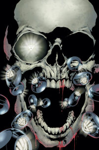 The black power rings began a grim journey across the cosmos seeking out the deceased. On Earth, the primary action centered on the emotional toll and physical attacks these reanimated corpses inflicted upon the living heroes. In Gotham City, Hal Jordan (Green Lantern) and Barry Allen (The Flash), both of whom had returned from the dead themselves, met at the graves of fallen heroes, reflecting on the nature of death and resurrection. Black Hand was shown digging up Batman's skull from his grave, using it as a conduit for the Black Lantern Central Power Battery on the planet Ryut. Simultaneously, in St. Roch, Hawkman and Hawkgirl, locked in a moment of emotional vulnerability, were brutally murdered by the Black Lantern versions of the Elongated Man and Sue Dibny. Ralph Dibny ripped out Hawkman's beating heart, and Sue took Hawkgirl's, with their rings absorbing the hearts and gaining power for the Black Lantern Corps. The issue ended with the widespread emergence of Black Lanterns as countless black rings descended upon the graves of fallen heroes and villains across the universe, commanding the dead to rise and harvest the hearts of the living, setting the stage for the massive conflict to come. (Blackest Night v1 #1)