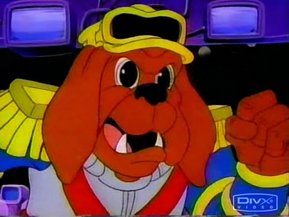 Commander Dogstar is a friend of Bucky O'Hare, and the captain of the SPACE frigate Indefagitable. A bloodhound, Dogstar has the uncanny ability to remember the scent of any criminal he has ever encountered (something which helped him figure out - too late, as it turned out - that Al Negator was a spy for the toads). He is also somewhat absentminded, tending to prattle on about heroic rhetoric, and requires his more down-to-earth companion Lt. Wolf to bring his mind back to the present.