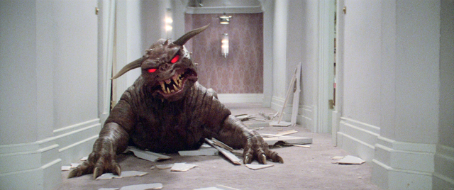 Vinz Clortho grunts as he stalks Louis Tully in the hallway of the Shandor Building