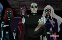 - In X-Men: Evolution, the final season showed En Sabah Nur being freed from imprisonment where he began his plans to forcibly evolve the human race. This saw him being opposed by both the Brotherhood of Mutants and the X-Men who he easily defeated in the first encounter. During these events, Mystique was killed when she sought to free Apocalypse but was tricked by Mastermind, Magneto was seemingly disintegrated in a confrontation with En Sabah and both Xavier as well as Storm were similarly destroyed when they confronted him. In reality, all four had been teleported into Apocalypse's pyramid where they were mind controlled by implants that amplified their abilities and made them followers of En Sabah Nur. These four became his Horsemen who were deployed when his numerous pyramids that were genetically evolving the Earth came under attack. Each of the Horsemen were deployed to protect a single pyramid with Mystique remaining behind to protect the Sphinx. The combined X-Men/Brotherhood allied with one another to defeat the Horsemen with Apocalypse eventually being defeated thus freeing those four from his command.