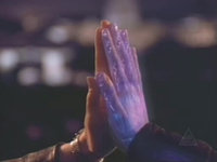 The Taelons possessed fire on their own world but unlike Humanity, they did not use it for the preparation of food. They did not even use it for heating purposes as they had more sophisticated methods for generating the temperatures for their own comfort. Instead, they only used fire for the ectastic pleasure it gave them. They also had the ability to direct their energy to a specific part of the body as part of an energy sharing ritual. Such gestures were only shared to specific individuals as everything that defined that individual Taelon was felt during the ritual. This included their feelings and emotions which were directed through the hands with the palm facing the palm of another that was a deep personal experience between the two individuals. Humans when facing this experience had a near ectastic quality to the ritual. (Episode: Wrath of Achilles)