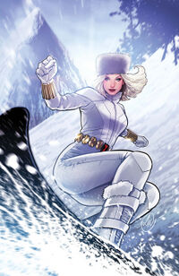 Gaining control of her life, Belova came to be recruited by Justin Cask who wanted her to free Dr. Durst from a S.H.I.E.L.D. prison facility in Antarctica. This saw her being provided a white version of her Black Widow costume and dropped at the site. She quickly learnt though that this was a trap as she was sent to serve as a test subject against the defences of the prison. Whilst there, she came to find the Red Guardian to be a prisoner at the facility where she freed him. He would battle Durst's forces whilst Belova managed to make her escape from the person. Afterwards, she would hack the financial accounts of Cask and donate all his vast fortune to various charities. (Widowmakers: Red Guardian and Yelena Belova v1 #1)